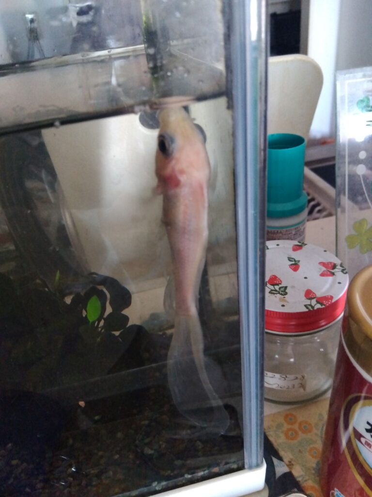ある時、テトラの安いフレーク状のエサに変えた後の変化です。