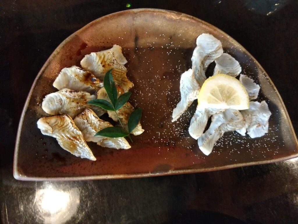 茶碗蒸 ふぐ皮の酢の物 お造りの炙り